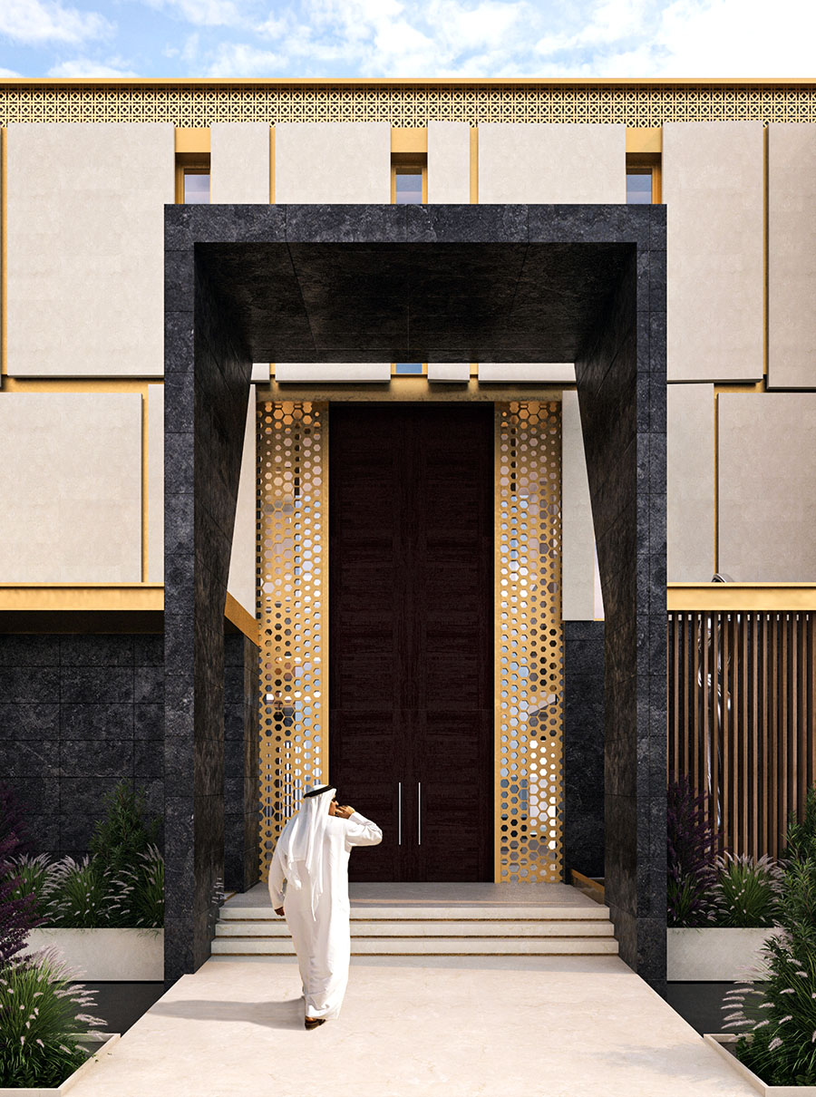 En esta casa unifamiliar se ha utilizado Arenisca Floresta para el exterior, cornisas, recercados de ventana, balaustres y pilastras y las columnas del jardín se han hecho en Mármol Blanco de Macael.